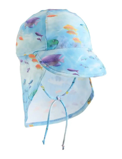 This elastic sun hat, perfect for little adventurers, features a sturdy brim at the front and an extended brim at the back for excellent sun protection. With adjustable elastic at the back and a flexible chin strap, it ensures a secure fit during all their playful activities. Made from soft, durable material, this hat combines comfort and practicality for sunny days spent by the water.