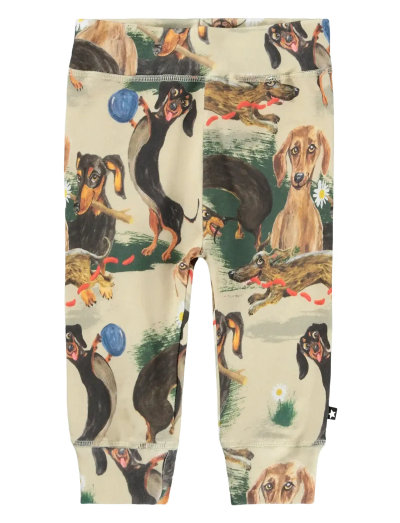 These pants from Molo are made in organic cotton jersey and feature a print. The pants have a wide elastic rib at the waist and leg openings.