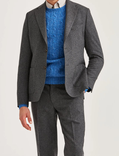 Diese Jacke aus weichem Flanell bietet einen komfortablen und raffinierten Look. Der taillierte Schnitt sorgt für eine scharfe Silhouette und macht sie sowohl für formelle als auch für legere Anlässe geeignet. Zu den Merkmalen gehören ein klassischer Zwei-Knopf-Verschluss und Pattentaschen.