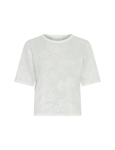 Dieser Pullover bietet eine feine, offene Strickstruktur, die Atmungsaktivität und eine subtile Textur verleiht. Die kurzen Ärmel und die lockere Passform machen ihn zu einem idealen Kleidungsstück für Übergangswetter.