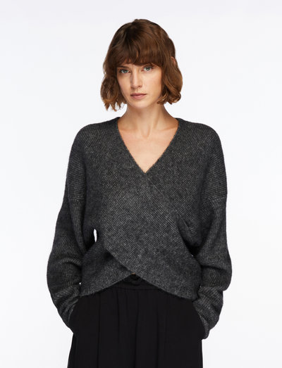 Dieser Pullover besticht durch sein schmeichelhaftes Wickeldesign und verleiht Ihrer Alltagsgarderobe einen Hauch von Eleganz. Die langen Ärmel und der weiche Strick machen ihn zu einer bequemen und stilvollen Wahl zum Layern oder zum Solotragen.