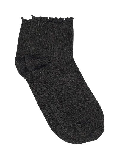 Diese Socken sind eine stilvolle und bequeme Ergänzung für jede Garderobe. Sie verfügen über einen zarten Rüschenbesatz und eine gerippte Textur für einen Hauch von Eleganz. Das Knöchellange Design sorgt für eine bequeme Passform.
