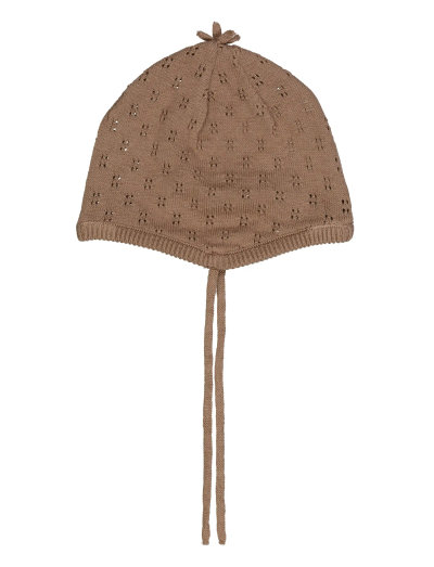 Diese gestrickte Babymütze verfügt über ein feines Lochmuster und ist aus zertifizierter Bio-Baumwolle gefertigt. Sie ist für die kleinsten Babys konzipiert und verfügt über ein Band, das für einen guten und bequemen Sitz sorgt. Die Bio-Baumwollkonstruktion berücksichtigt sowohl die Umwelt als auch die an der Produktion beteiligten Arbeiter.