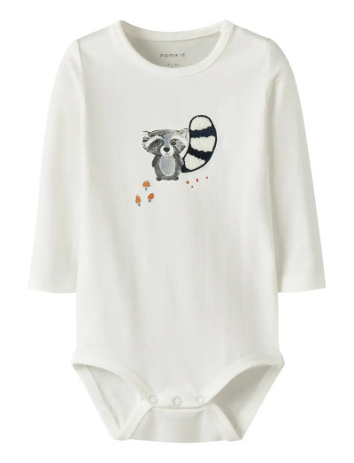 Weicher Jersey macht diesen Body zu einer bequemen Wahl für den ganzen Tag. Mit langen Ärmeln und einem Rundhalsausschnitt ist er mit einem praktischen Druckknopfverschluss und einer niedlichen Waschbär-Grafik versehen.
