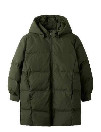 ReflektordetailsKreieren Sie mit dieser langen Pufferjacke einen bequemen und trendigen Look für Ihr Kind, die auf Qualität und Alltagstauglichkeit ausgelegt ist. Diese Oberbekleidung verfügt über eine abnehmbare Kapuze für mehr Sicherheit, lange Ärmel mit Rippbündchen und Vordertaschen. Sie hat außerdem einen Reißverschluss mit Reißverschlussschutz und dekorative reflektierende Details.