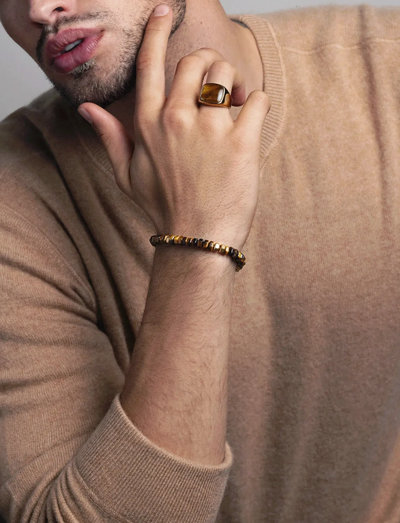 Dieses Armband mit einer Mischung aus Tigerauge und goldfarbenen Perlen verleiht jedem Look einen Hauch von raffiniertem Stil. Die hexagonale Form der Perlen sorgt für einen modernen, geometrischen Touch, während der sichere Verschluss dafür sorgt, dass es an Ort und Stelle bleibt.