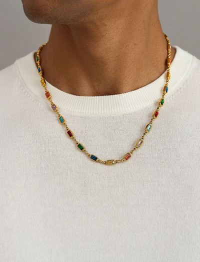Diese Halskette mit einer Reihe von lebendigen, rechteckigen Steinen verleiht jedem Ensemble einen Farbtupfer. Das Design bietet eine moderne Variante eines klassischen Stils und ist somit ein vielseitiges Accessoire für zwanglose und formelle Anlässe.