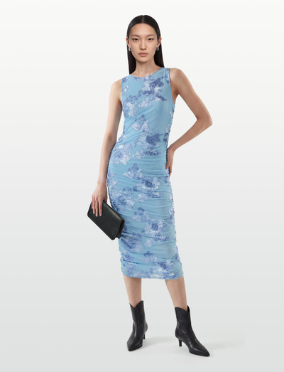 Dieses figurbetonte Kleid aus dehnbarem Mesh besticht durch einen faszinierenden 3D-Blumendruck. Der hohe Halsausschnitt und die kurzen Ärmel sorgen für eine elegante Note, während die gerafften Details die Figur schmeicheln. Ein vielseitiges Kleidungsstück für jede Garderobe.