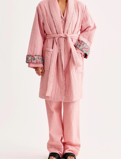 Gönnen Sie sich den kuscheligen Komfort dieses Bademantels aus Baumwolle, ideal für entspannte Momente zu Hause oder um Ihrem Spa-Erlebnis einen Hauch von Luxus zu verleihen. Entworfen für Entspannung und Eleganz, mit einer weichen Textur und einem zeitlosen Design. Der florale Besatz sorgt für eine feine Note.