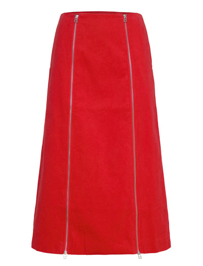 Dieser A-Linien-Rock aus weichem Cord ist vollständig gefüttert und verfügt über markante Zwei-Wege-Reißverschlüsse. Die Reißverschlüsse verleihen der klassischen Silhouette eine moderne Note und machen sie zu einem vielseitigen Kleidungsstück für verschiedene Anlässe.