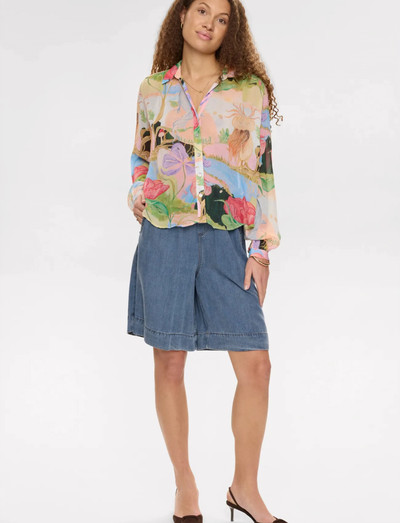 Dieses langärmlige Hemd mit einem skurrilen Allover-Print verleiht jedem Outfit eine künstlerische Note. Das Design mit Knopfleiste ermöglicht ein vielseitiges Styling, während der leichte Stoff für ein angenehmes Tragegefühl sorgt.