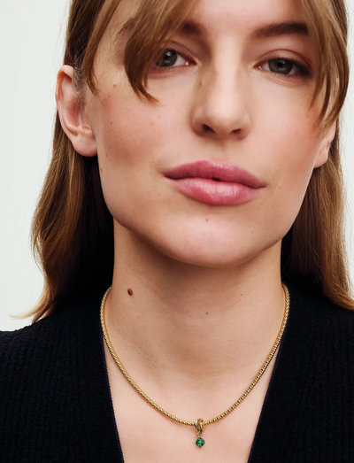 Dieser Charm ist ein Symbol für ewige Verbundenheit und zeigt einen dreifach geknoteten Kreis in 14-karätiger Vergoldung, der sich zu einem Unendlichkeitszeichen verschlingt. Ein facettierter, königsgrüner Kristall baumelt und verleiht jedem Träger eine lebendige Note. Verschenke ihn als Zeichen ewiger Zuneigung.