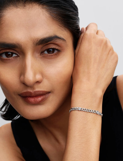 Bringen Sie Ihre Zuneigung mit diesem Armband aus Sterlingsilber zum Ausdruck. Die Kette ist mit herzförmigen Steinen in regelmäßigen Abständen besetzt, wodurch ein zeitloses und elegantes Schmuckstück entsteht. Tragen Sie es als Symbol der Liebe.