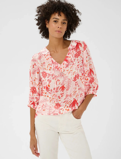 Diese Bluse mit zartem Bindeband am Ausschnitt verleiht einen Hauch von raffiniertem Charme. Die fließende Silhouette und die Dreiviertelärmel machen sie zu einer vielseitigen Ergänzung für jede Garderobe, die sich für verschiedene Anlässe leicht elegant oder leger kombinieren lässt.