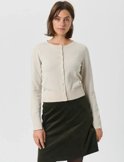 Dezenter Schimmer verleiht dieser klassischen Strickjacke eine besondere Note und macht sie zu einem vielseitigen Kleidungsstück für Lagenlooks. Das Design mit Knopfleiste und langen Ärmeln sorgt für einen zeitlosen Look.