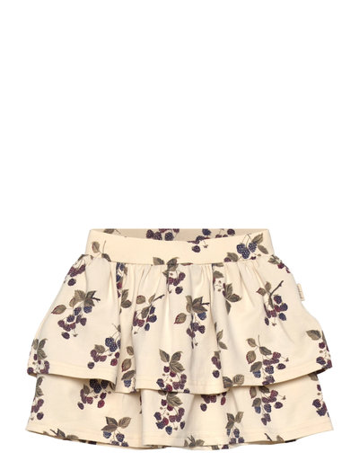 Dansk: Nederdel med et smukt akvarelprint fra Petit Piao i økologisk bomuld. Printet er inspireret af den danske natur. I den strækbare linning er der justerbare stopper for den mest optimale pasform. Nederdelen har to lag stof og rynk i bunden for at give det feminint udtryk. Materialet er blødt og strækbart, designet til komfort og leg. Produceret i Indien.