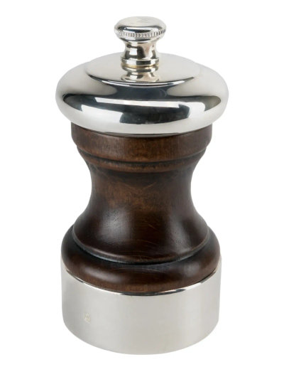 The Peugeot Palace pepper grinder is a reinvention of the oldest model created in 1874, which was a feature on the table at all the big banquets as a symbol of prestige and grandeur. This pepper grinder perfectly combines rustic aged wood with hallmarked silver-plated metal.