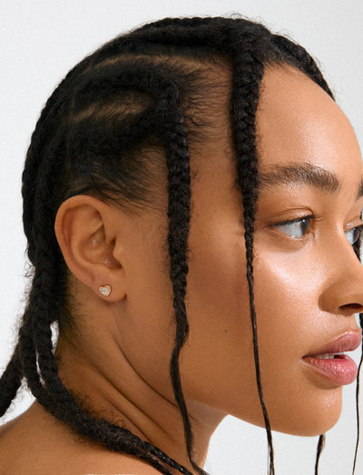 Zarte, herzförmige Ohrstecker, die jedem Look einen Hauch von Glanz verleihen. Diese Ohrringe verfügen über eine Ansammlung schimmernder Steine in einem polierten Rahmen. Ein klassisches Design macht sie ideal für den Alltag oder besondere Anlässe.