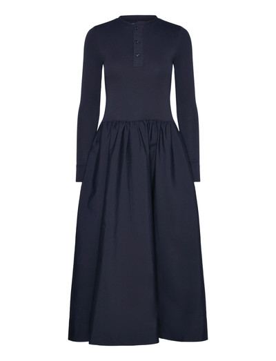 Dieses langärmlige Kleid mit Knopfleiste bietet eine Mischung aus lässigem Komfort und raffiniertem Stil. Das Design verfügt über einen gerafften Rock, der der Silhouette einen Hauch von Volumen und Bewegung verleiht.
