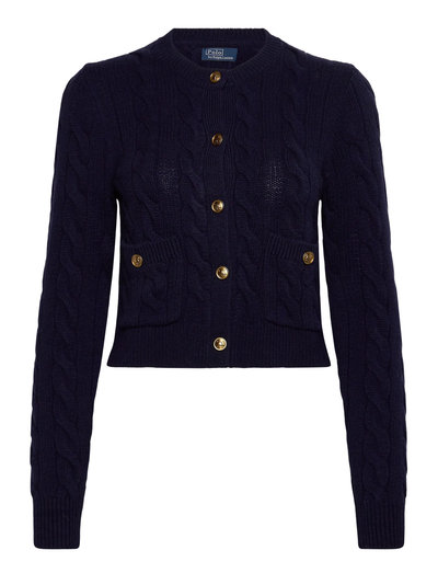 Veredeln Sie Ihren Look mit dieser Strickjacke im Zopfmuster mit klassischem Rundhalsausschnitt und Knopfleiste. Das edle Kleidungsstück ist mit dezenten Vordertaschen versehen.