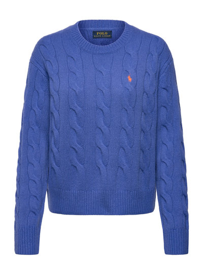 Ein klassisches Zopfmuster-Design wertet diesen Pullover mit Rundhalsausschnitt auf. Er ist aus einer Mischung aus Wolle und Kaschmir gefertigt und verfügt über das charakteristische gestickte Pony auf der Brust und eine gerade Passform, die bis zur Hüfte reicht.