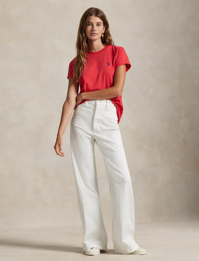 Cut for a straight fit, this cotton jersey crewneck tee has been washed for added softness and finished with our signature embroidered Pony.Straight fit. Intended to hit at the hip.Size medium has a 24.5" body length. Body length is taken from the high point of the shoulder.Crewneck.