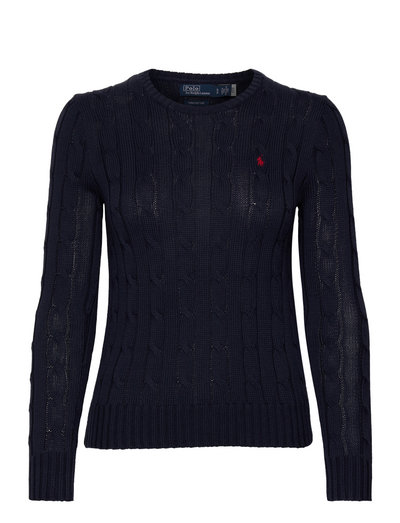A Polo essential, this slim-fitting crewneck sweater is made with breathable cotton and showcases our signature cable-knit construction.Slim fit.Size medium has a 22.75" body length and a 24.75" sleeve length. Body length is taken from the high point of the shoulder. Sleeve length is taken from the shoulder and changes 0.5" between sizes.Crewneck.Long sleeves with rib-knit cuffs. Rib-knit hem.