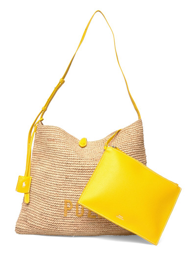 Diese Messenger Bag aus gewebtem Bast bietet einen entspannten und dennoch stilvollen Look. Sie verfügt über einen verstellbaren Schulterriemen für bequemes Tragen und wird mit einem abnehmbaren Beutel für zusätzliche Vielseitigkeit geliefert.