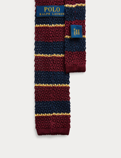 Handgenähte Details und außergewöhnliche Materialien zeichnen diese Strickkrawatte aus. Der fein gerippte Abschluss an jedem Ende verleiht diesem ungefütterten Stück einen Hauch von Raffinesse.