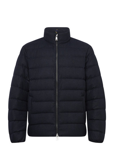 This jacket is crafted from herringbone cloth and insulated with 650-fill-power down for superior warmth.Size medium has a 28.25" body length (front and back), a 19.75" shoulder, a 48.5" chest, and a 36.25" sleeve length. Sleeve length is taken from the center back of the neck.Mockneck. Two-way full-zip front with a flap at the top that prevents chafing. Zipper pulls and drawstring stoppers custom-developed with a “Polo” logo.Long sleeves with elasticized cuffs. Two front waist zip pockets.