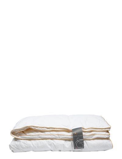 DaunenExperience the Pure Sleep Premium duvet, designed and manufactured in Denmark. The duvet is filled with 90% soft Muscovy down and 10% Muscovy feathers, providing a high fill power of 725 CUIN. As a result, it is light and airy while effectively retaining warmth, allowing you to sleep comfortably throughout the night. The soft and luxurious cotton satin feels soft against the skin, while the elegant golden piping adds a sophisticated touch to the duvet.
