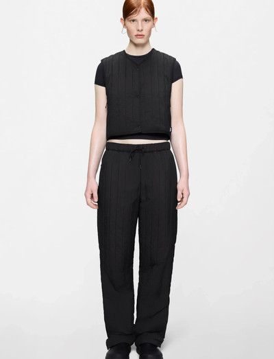 Die leichte Wattierung macht diese kurze Weste zu einem idealen Kleidungsstück für den Lagenlook. Die ärmellose Silhouette ist für die Übergangszeit konzipiert und kann als leichte Oberschicht oder als isolierende Zwischenschicht getragen werden. Sie verfügt über einen Druckknopfverschluss, elastische Einfassungsdetails und verdeckte Reißverschlusstaschen an den Seiten. Der weiche V-Ausschnitt verleiht jeder Jahreszeit eine schlichte Eleganz.