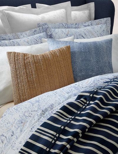 An artful duvet cover by Ralph Lauren covered in the brand's signature pattern - paisley. Only this time, it's given a summery, coastal feel, coloured in soft periwinkle and white depicted in a blurred, watercolour-like style. Made with 100% cotton sateen, the material feels silky and smooth against the skin. 100% cotton sateen Blurred paisley print in periwinkle and white 4cm hemmed edge Reversible design Button closure Article certified STANDARD 100 by OEKO-TEX® - number CQ 885/2.