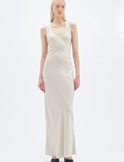 Dieses Maxikleid ist in einem schmeichelhaften Bias-Cut gefertigt, der eine elegante Silhouette erzeugt. Das ärmellose Design und die lange Länge machen es ideal für Abendveranstaltungen.