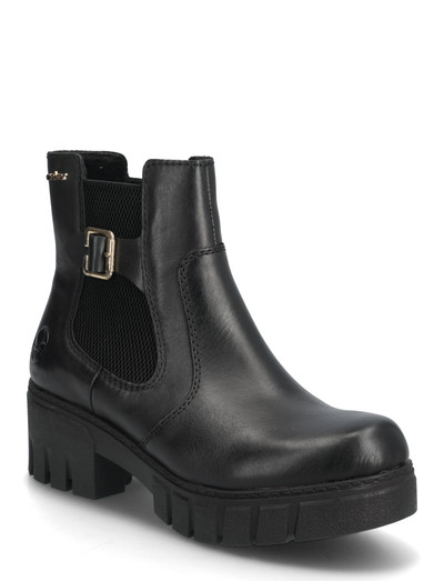Style vibes are on! These black Rieker Chelsea boots are made of smooth leather and offer real comfort for the feet. Thanks to the zipper and the elastic insert, putting on this model is child's play. The trendy buckle is a real eye-catcher. The platform sole is grippy and light and ensures good traction at all times. The padded and removable insole is a special feature that provides functional comfort. You can't ask for more!