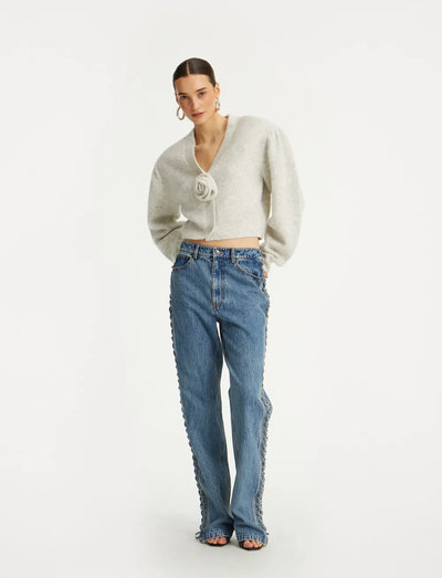 Klassischer Denim erhält mit dieser Straight-Leg-Jeans ein unverwechselbares Update, die mit Ösen und Schnürdetails an den Seiten versehen ist. Das Design verleiht einer zeitlosen Silhouette eine moderne Note und macht sie zu einer herausragenden Ergänzung für jede Garderobe.
