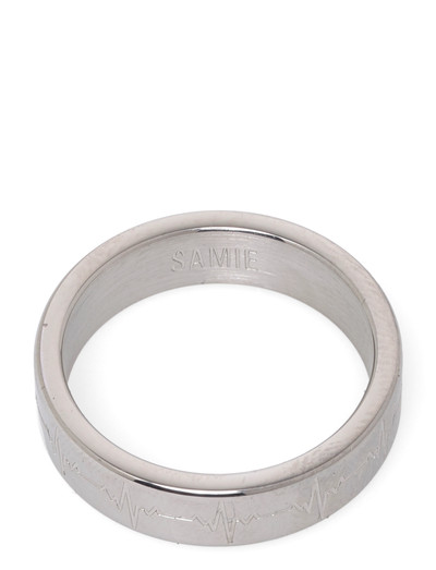 Dieser flache Ring ist eine ständige Erinnerung an den Rhythmus des Lebens und verfügt über eine Herzschlag-Gravur rundherum. Er ist aus wasserfestem Edelstahl gefertigt und hält täglicher Beanspruchung stand, einschließlich Schweiß, Wasser und Parfüm.