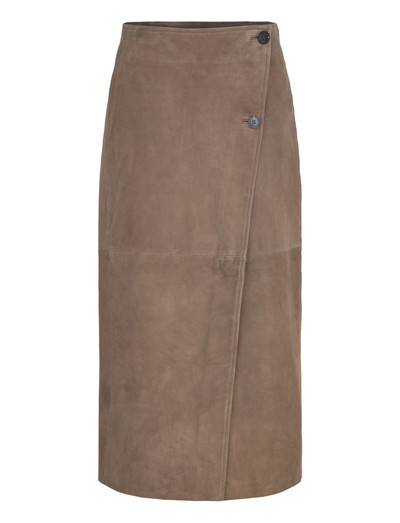 Dieser lange Wildlederrock wurde für eine schmeichelhafte Silhouette entworfen und zeichnet sich durch eine hohe Taille und ein schickes Wickeldesign aus. Die Knopfdetails sorgen für einen Hauch von Raffinesse, während der vordere Schlitz für Bewegungsfreiheit sorgt. Abgerundet mit einem bequemen Futter aus recyceltem Polyester und nicht-funktionellen Vordertaschen.