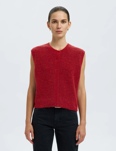 Diese Strickweste bietet mit ihrem Knopfdesign eine raffinierte Silhouette. Die ärmellose Konstruktion macht sie ideal zum Layern, während der weiche Strick Wärme und Komfort bietet.