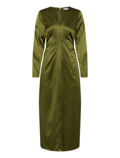 Knöchellanges Kleid mit langen Ärmeln und einem schmeichelhaften V-Ausschnitt. Dieses elegante Kleidungsstück verfügt über einen Reißverschluss und einen Rückenschlitz, was eine bequeme, normale Passform gewährleistet.