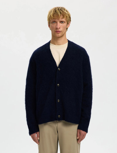Diese Strickjacke mit gebürsteter Oberfläche bietet eine bequeme, lockere Passform, lange Ärmel und gerippte Bündchen. Das V-Ausschnitt-Design macht sie zu einem vielseitigen Kleidungsstück für den Lagenlook.