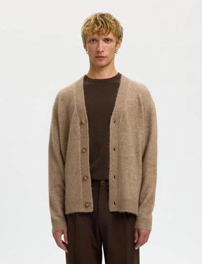 Diese Strickjacke mit gebürsteter Oberfläche bietet eine bequeme, lockere Passform, lange Ärmel und gerippte Bündchen. Das V-Ausschnitt-Design macht sie zu einem vielseitigen Kleidungsstück für den Lagenlook.