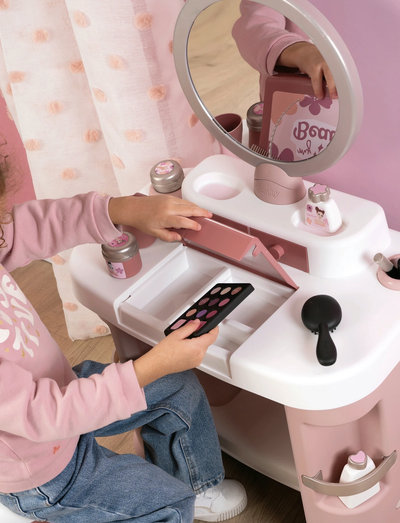 3+ JahreThe Smoby My Beauty Dressing Table gives children their own space for imaginative beauty play. The elegant dressing table has a large mirror, shelves and plenty of room for the included accessories. Children can brush hair, try pretend makeup and play running their own salon. The realistic details and stylish design make the furniture a nice fit in the playroom. A playful way to practice social skills, creativity and imagination. Suitable for children from 3 years. Made in France.