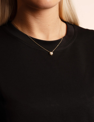 Eine feine Kette trägt eine schimmernde Perle in dieser eleganten Halskette. Der Anhänger hat einen dezent strukturierten Rahmen, der einen feinen Kontrast zur glatten Oberfläche der Perle bildet. Dieses Schmuckstück verleiht jedem Outfit einen Hauch von raffinierter Schönheit.