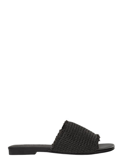 Diese flachen Slipper mit quadratischer Vorderseite bieten eine entspannte Passform. Das textile Obermaterial sorgt für eine besondere Note, während der niedrige Absatz für eine dezente Erhöhung sorgt.