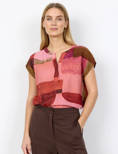 Diese Bluse mit einem einzigartigen, abstrakten Print ist aus einem Gemisch aus LENZING™ ECOVERO™ Viskose und Nylon gefertigt. Das Design zeichnet sich durch einen runden Halsausschnitt und eine kurze Knopfleiste aus. Es ist ein ideales Kleidungsstück, um es mit Röcken oder Hosen für einen eleganten und dennoch entspannten Stil zu kombinieren.