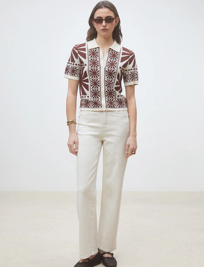 Dieses kurzärmelige Oberteil mit geometrischem Muster bietet einen unverwechselbaren Look. Das Design mit Knopfleiste und klassischem Kragen verleiht einen Hauch von Raffinesse und macht es zu einer vielseitigen Ergänzung für jede Garderobe.