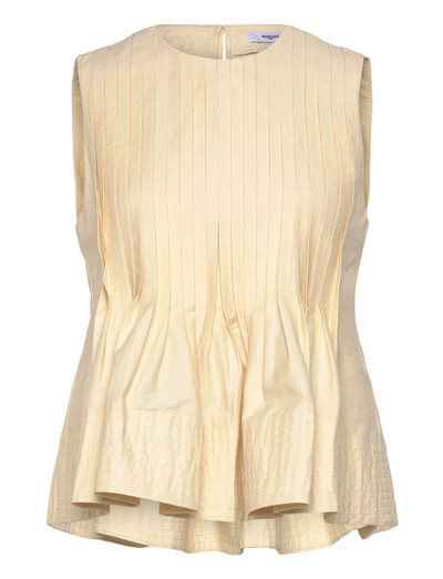 Dieses ärmellose Top besticht durch dezente Falten auf der Vorderseite, die einen Hauch von Textur und optischem Interesse verleihen. Der Schößchensaum sorgt für eine schmeichelhafte Silhouette und macht es zu einer vielseitigen Ergänzung Ihrer Garderobe.