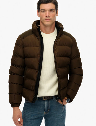Diese gesteppte Jacke ist für kühleres Wetter konzipiert und bietet eine bequeme, entspannte Passform. Sie verfügt über einen gerippten zweiten Kragen mit Reißverschluss, der für zusätzliche Wärme sorgt. Die Jacke umfasst außerdem zwei Außentaschen mit Reißverschluss und eine Innentasche aus Mesh sowie elastische Bündchen und einen verstellbaren Saum mit Kordelzug. Ein gestickter Text ziert die Rückseite.