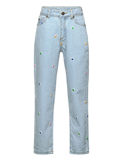 These light blue denim pants from THE NEW are both stylish and comfortable. The pants feature both front and back pockets, a practical button closure, and belt loops. The embroidered flowers add a feminine and unique touch, making them perfect for both everyday wear and special occasions.- Light blue denim.- Front and back pockets.- Zipper and button closure.- Belt loops.- Embroidered flowers.